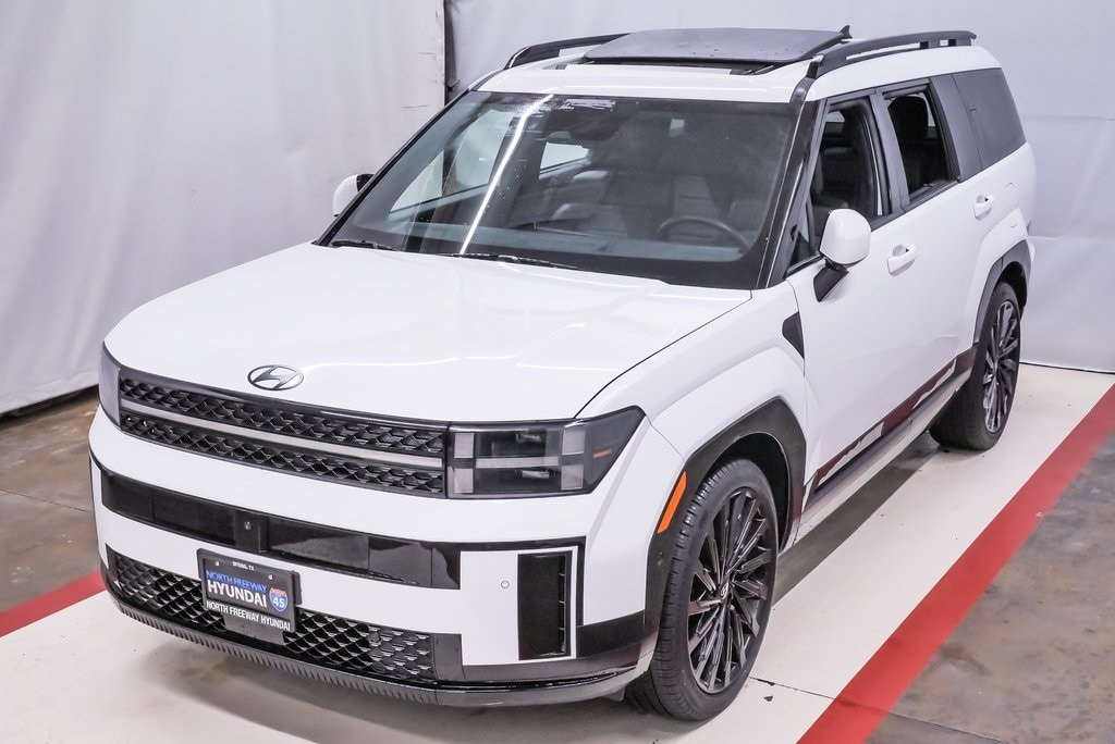 2025 Hyundai Santa Fe Calligraphy with 4,620 miles 2.5L 4cylinder engine and automatic transmission. Serenity White exterior and Ebony interior. 21" Exclusive Calligraphy Wheels, Proximity Key w/Push Button Start, Dual-Pane Sunroof, Power Liftgate, Surround View Monitor, Heads Up Display, Ventilated Front Seats, Nappa Leather Seating Surfaces, Remote Smart Parking Assist, Dual Wireless Phone Charger, Wireless Android & Apple Carplay. Warranty Start Date 01/06/2025 with over 49 months of bumper to bumper and over 109 months of powertrain warranty remaining. Located in Spring, Texas on Interstate I-45 North minutes from The Woodlands, Tomball and Conroe. CALL US CLICK US COME SEE US 832-446-4000.